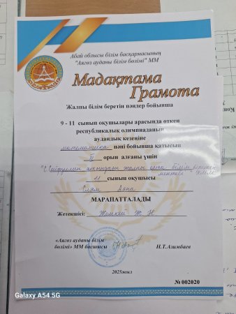 Жалпы білім беретін пәндер бойынша 9-11 сынып оқушылары арасында өткен республикалық олимпиадасының аудандық кезеңіне қатысып «С.