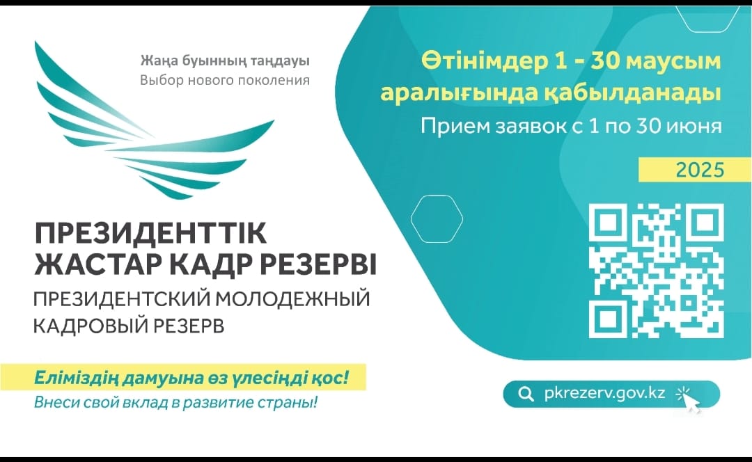 🇰🇿 Жалынды жастарды елге қызмет етудің озық үлгісін көрсету үшін «Президенттік жастар кадр резерві» жобасына белсене қатысуға шақырамыз. Еліміздің дамуына өз үлесінді қос!