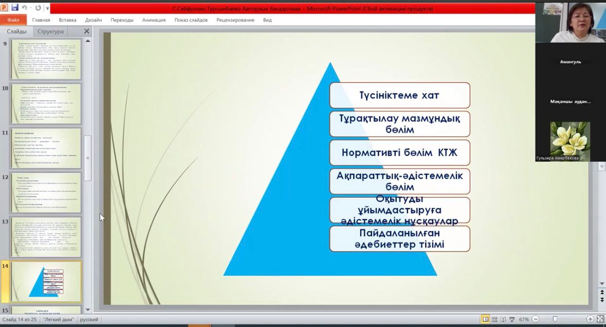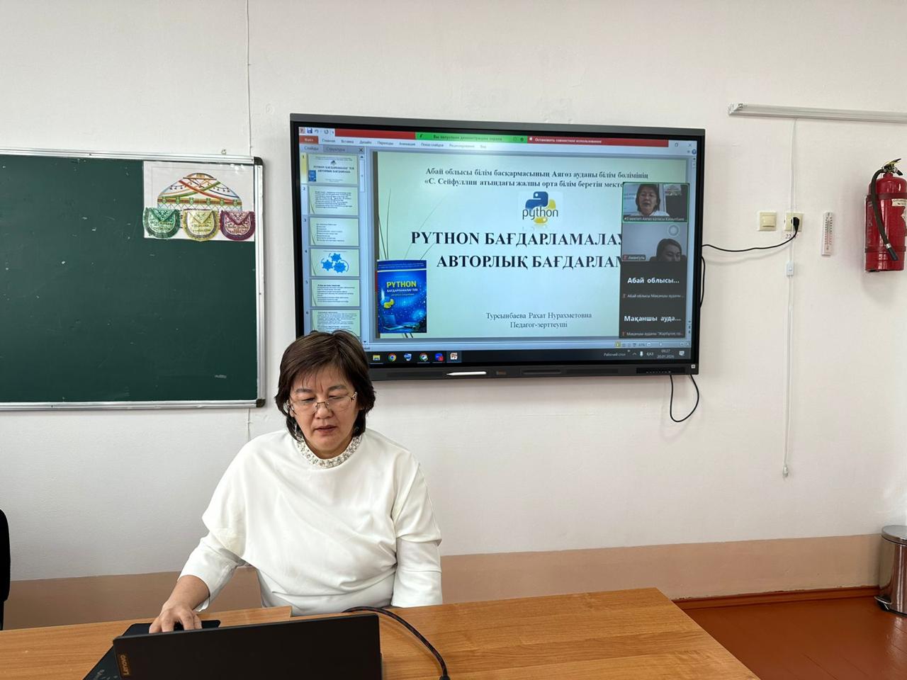 "Абай облысы, білім басқармасы" ММ "Облыстық инновациялық-әдістемелік орталығы" КММ-нің педагог-зерттеуші санатына үміткер және растайтын педагогтердің облыс деңгейінде 3 ауданға тәжірибелерін тарату отырысы өтті. Семей қаласы, Аягөз, Мақаншы, Жаңа Семей аудандарының білім бөлімдері арасында педагог-зерттеуші Турсынбаева Рахат Нурахметовнаның тәжірибесі 3 ауданға таратылды